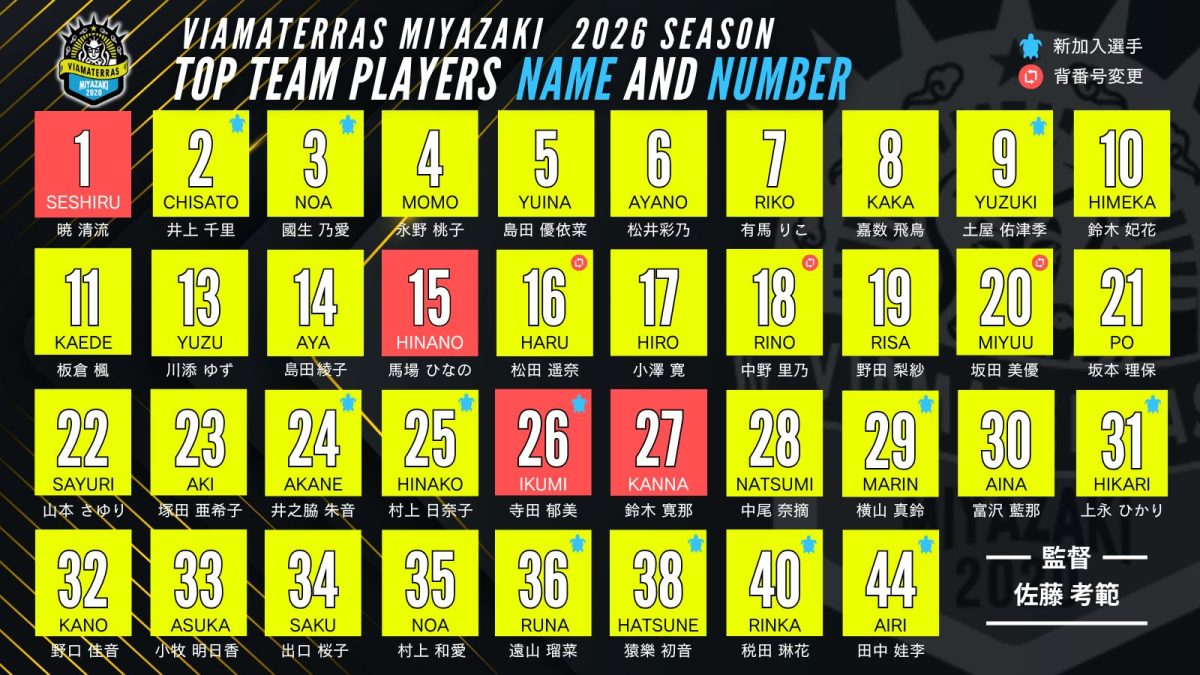 ヴィアマテラス宮崎 2026 オーセンティックユニフォーム 【21番〜44番】(tsuku2.jp)