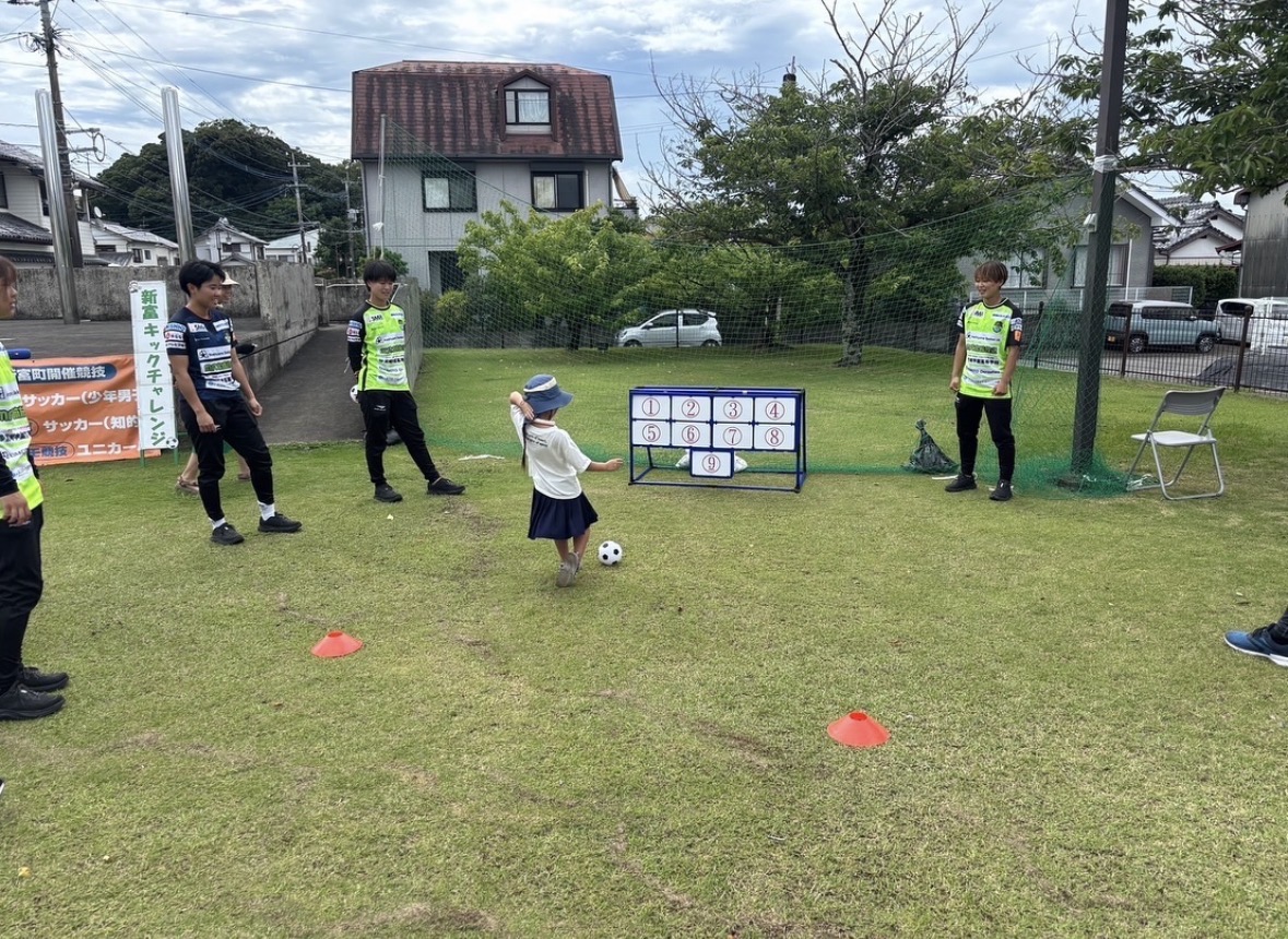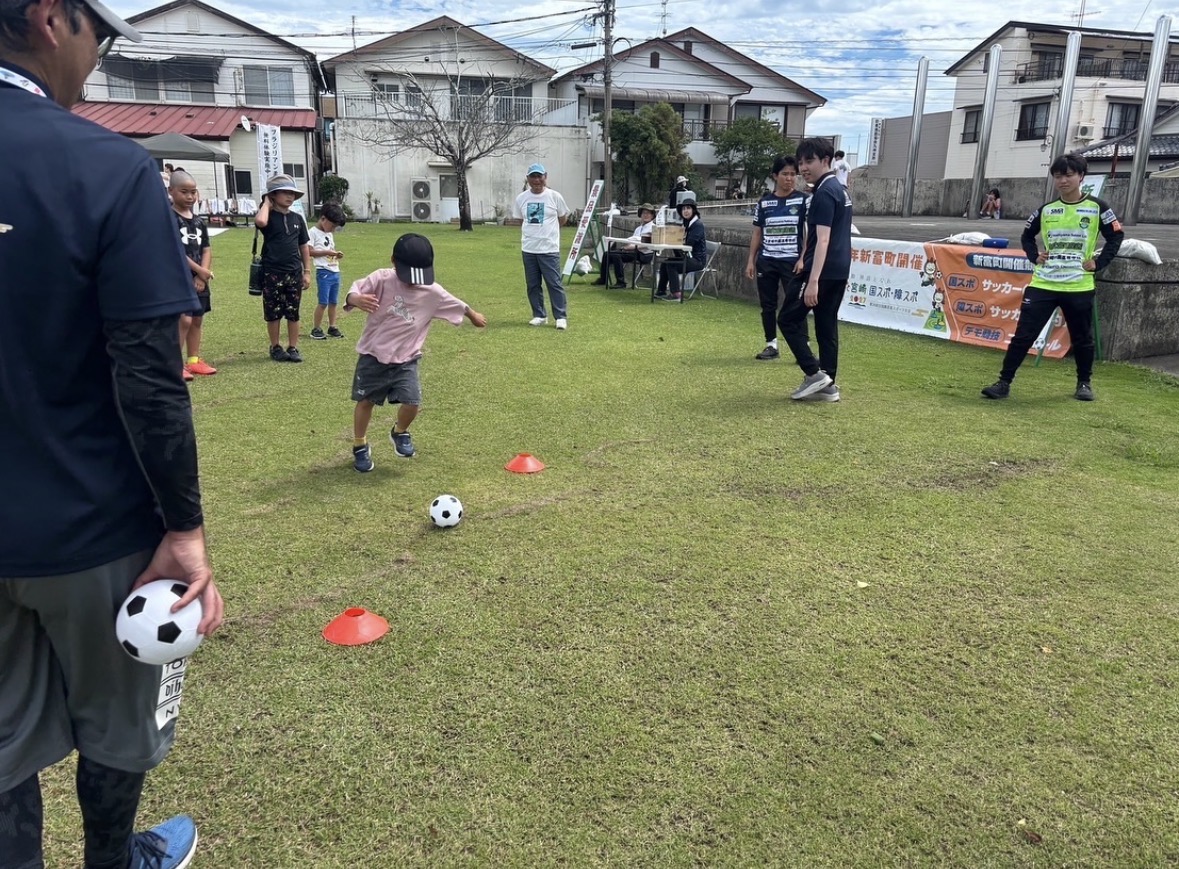 6月15日(日)新富町のさくら南公園で開催された、日本のひなた宮崎 国スポ・障スポ啓発イベント「シュートでGO!新富キックチャレンジ」に選手が参加させていただきました。