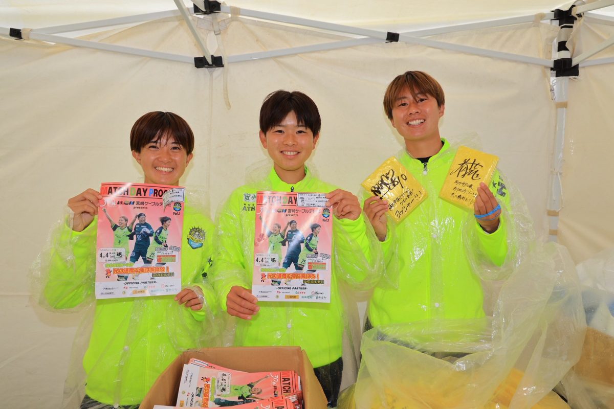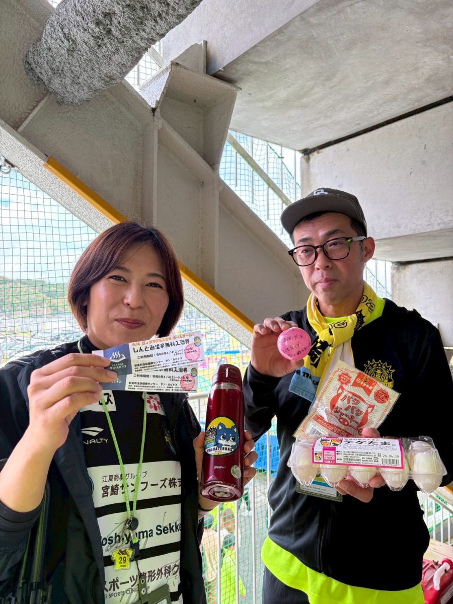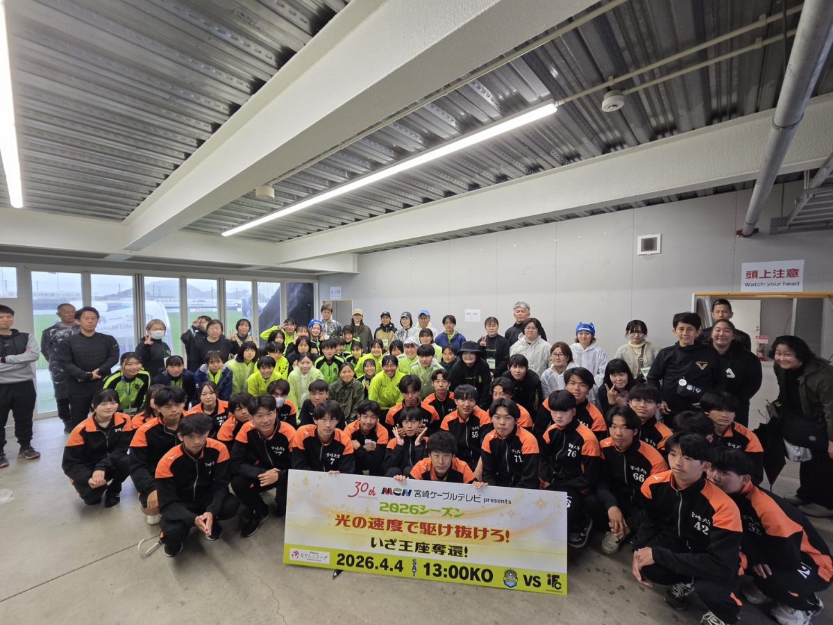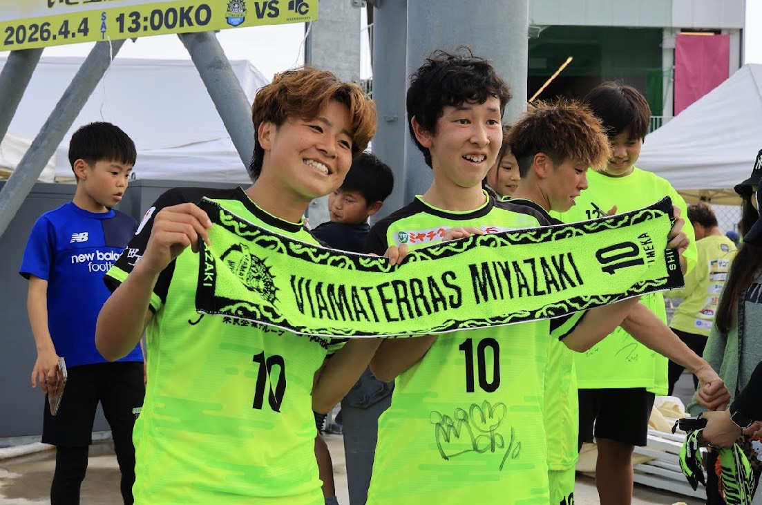 雨風が強い中、予定変更などがありながらもご来場いただいた「1,021名」の皆様、マッチデーパートナーの「MCN宮崎ケーブルテレビ株式会社」様、NOBU様をはじめ、ホームゲームを支えてくださったヴィアマスター、宮崎県立宮崎大宮高等学校サッカー部等、皆様のおかげで、ホームで一度も勝利できていなかった相手に最後まで諦めずに戦うことができ、逆転勝利を掴むことができました。